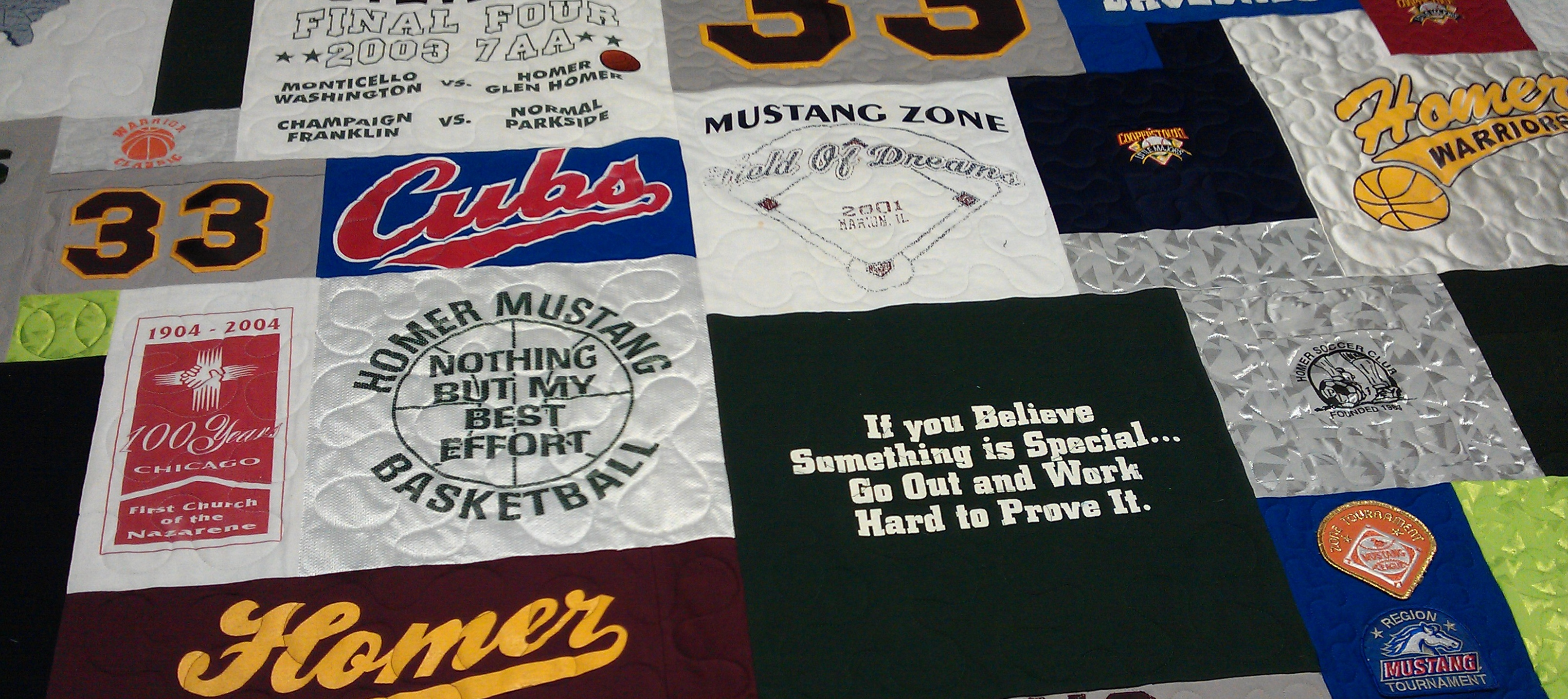 CONTACT ME to have your shirts turned into a custom designed, professionally made quilt that will last a long, long time! Gather up those shirts from totes and basements and get a beautiful quilt custom made soon.