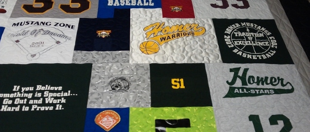 Here are photos of a t-shirt quilt that includes baseball and soccer jerseys quilt I custom made, quilted and finished for a customer from a neighboring state. We communicated by email and phone and met at a library halfway between our homes. Very safe and easy for both of us!